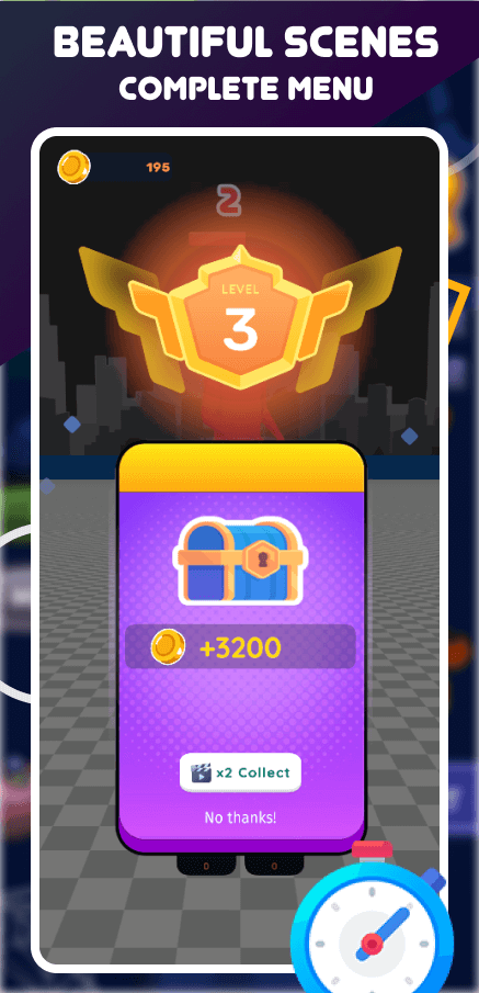- 50 Levels + (Infinite : Spawn random levels after 50 levels)