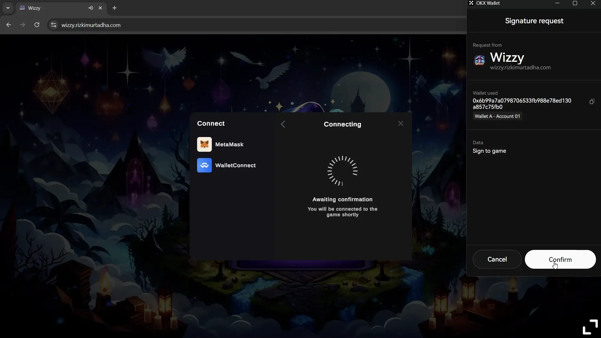 Wizzy Web3 is an intense multiplayer wizard 🧙🏻battle game that blends competitive gameplay with blockchain technology features, powered by the Third Web Unity SDK. Engage in strategic combat, trade NFT items, and explore immersive game modes, all while enjoying smooth integration between Web3 and classic gaming mechanics.